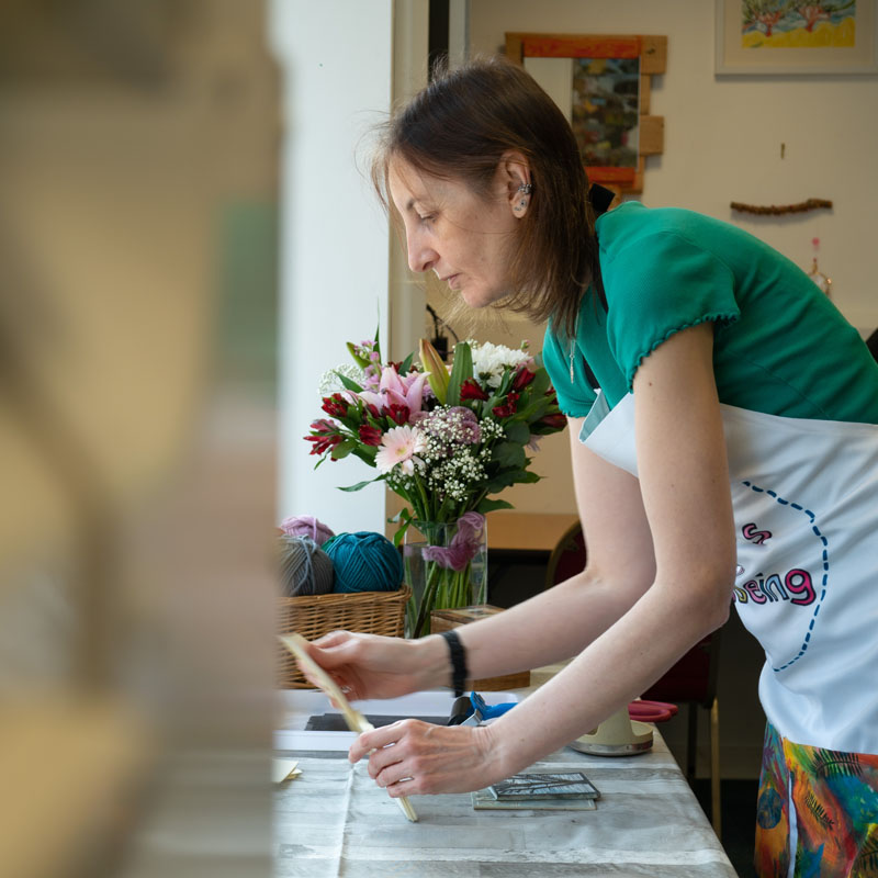 I work from my studio in Derwentside, County Durham in north east England. I create lino prints of local landscapes, architecture and nature, original hand drawn Celtic knotwork and metal embossed art and objects. I also love to teach these skills (and more!) to others – find out more at www.craftsforwellbeing.co.uk
